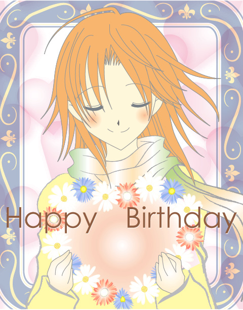 先週に、橙蜜柑ちゃんのお誕生日だと知り、今週末にお祝いイラストを作りました(*´Д`)ハピバ蜜柑ちゃん!!